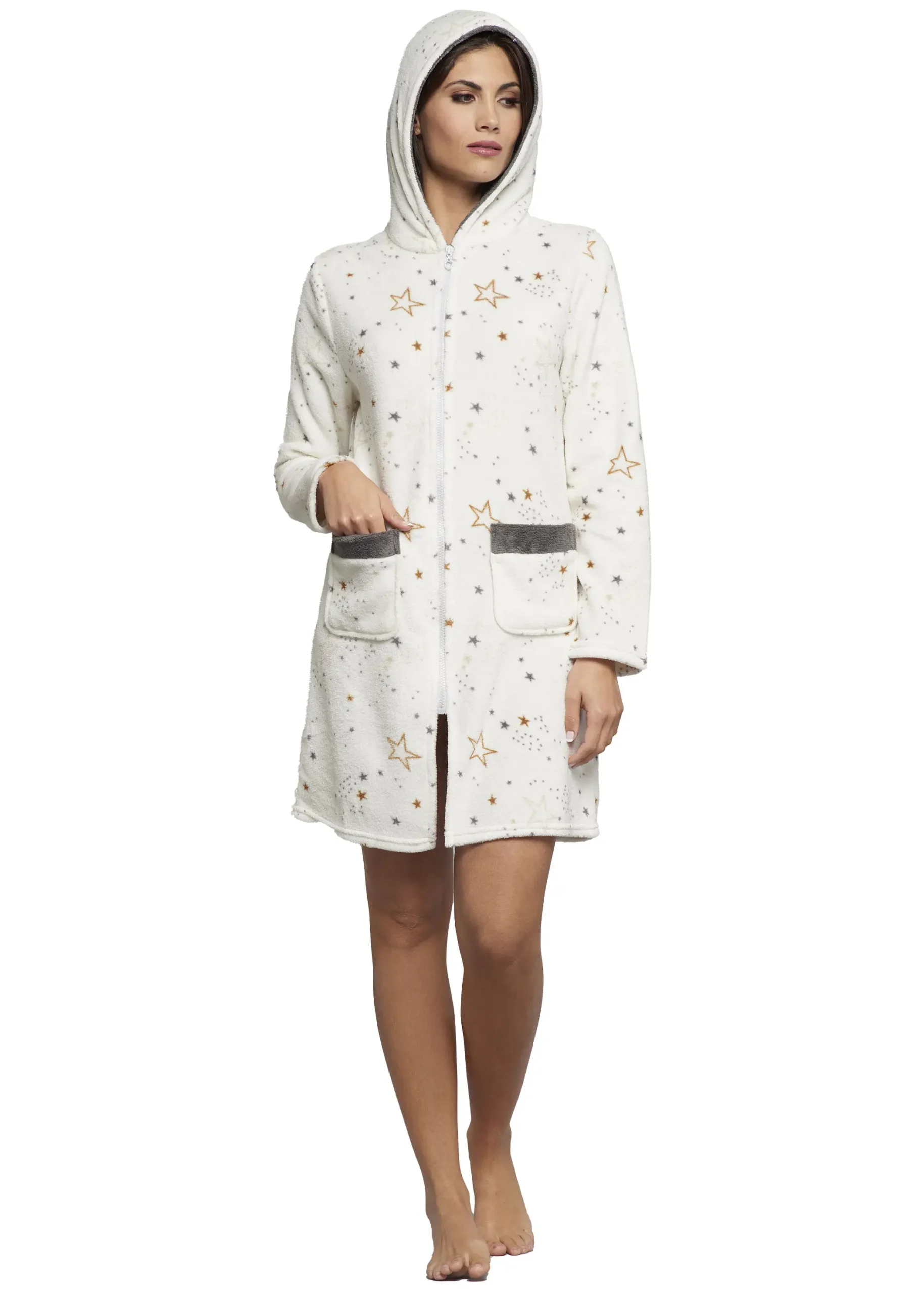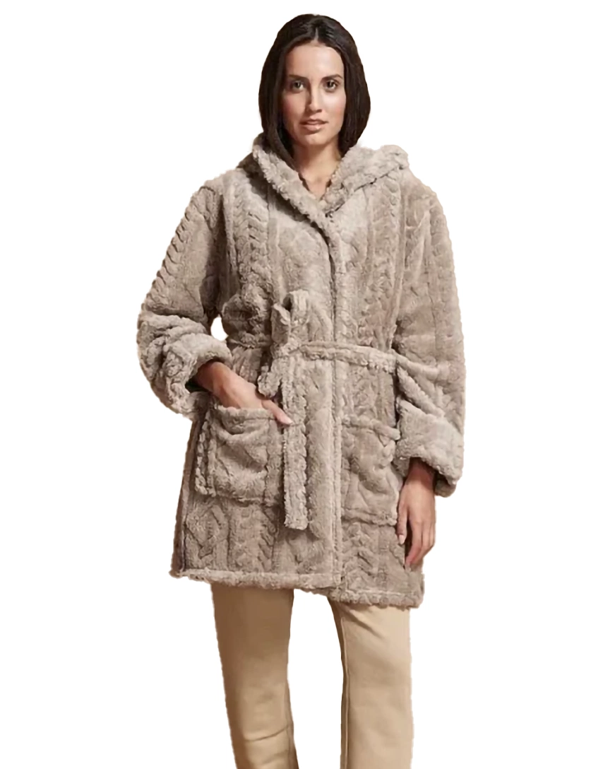 Vestaglia Donna Pile Coral con Cappuccio | Karel 3205