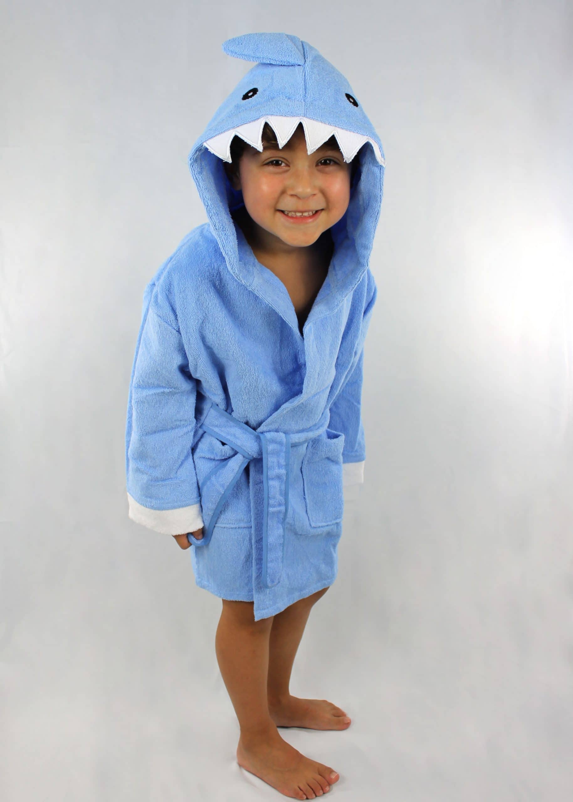 Soffice ed assorbente, con ampie tasche laterali, cintura in vita e cappuccio dalla forma di simpatici animaletti, è disponibile nella versione Squalo, Elefante, Coniglietto e Ippopotamo, per trasformare il bagnetto dei bambini in un momento di gioco e divertimento.