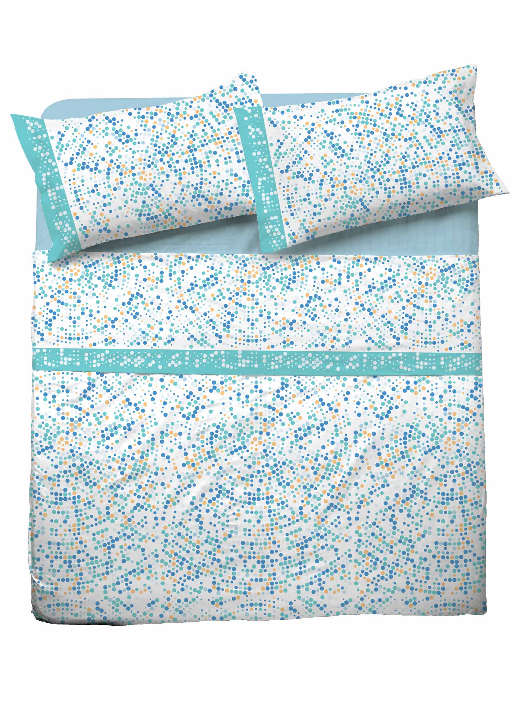 Dimensioni: Il Set 1 piazza è composto da: Lenzuolo sopra: 150×295 cm, Lenzuolo sotto con angoli: 90×200 cm, 1 federa 52×80 cm.