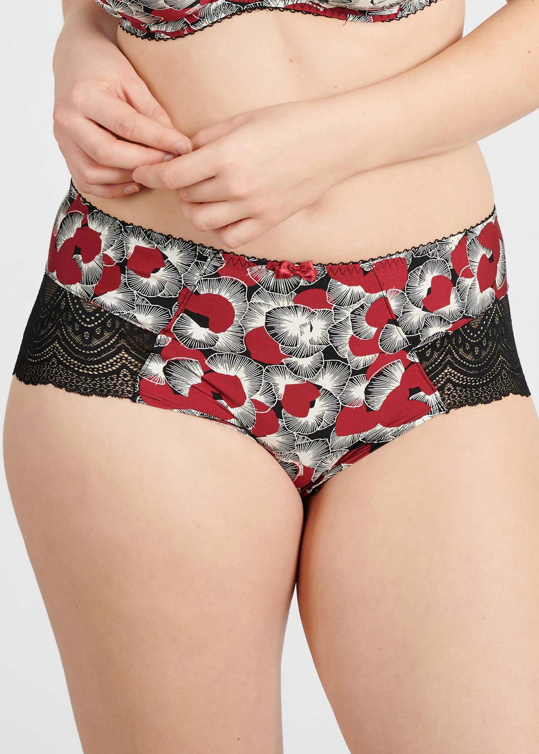Culotte in morbida microfibra con stampa grafica floreale a stampa e pizzo.