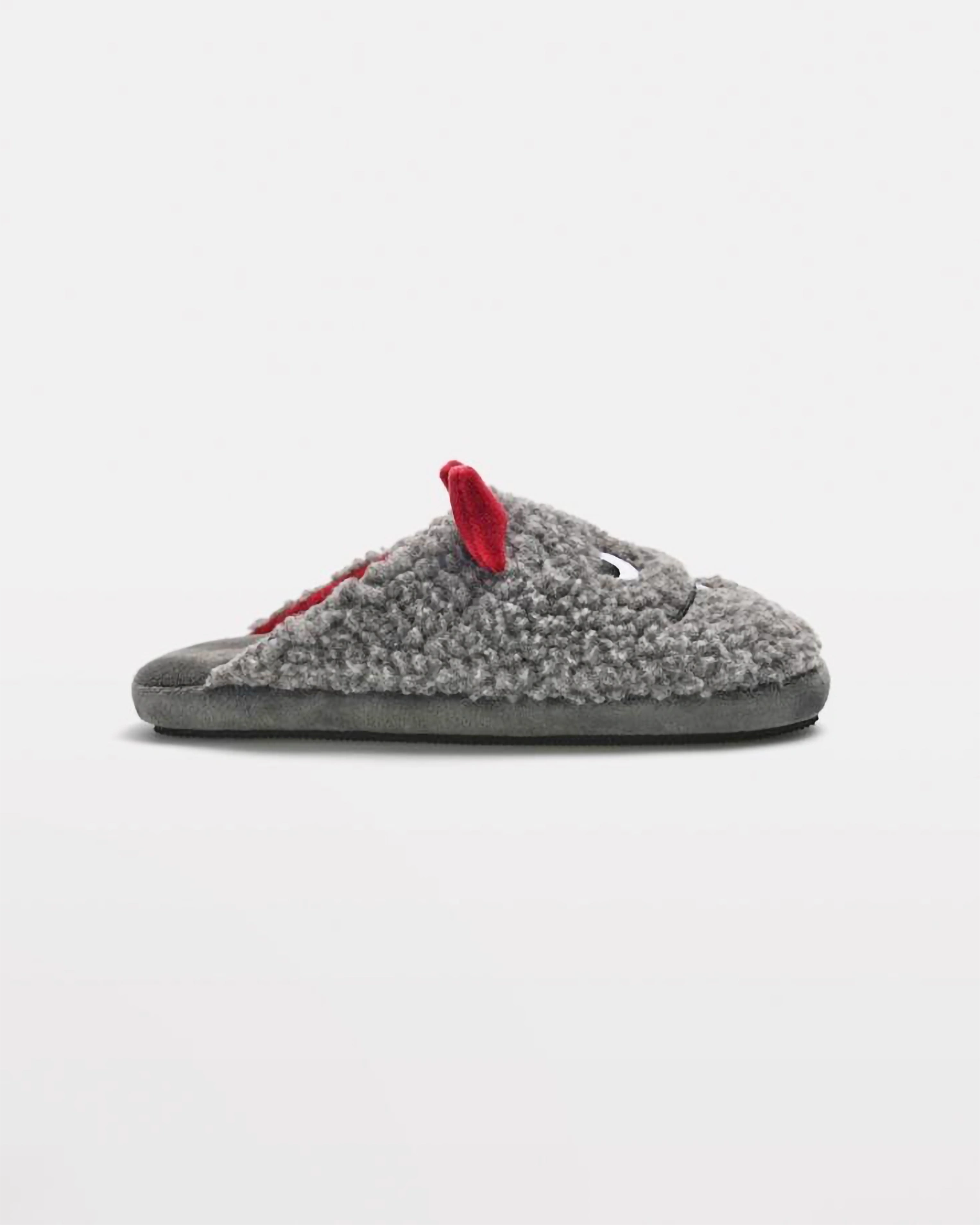 Colorazione grigio con faccina buffa e con corna da diavoletto rosse.
