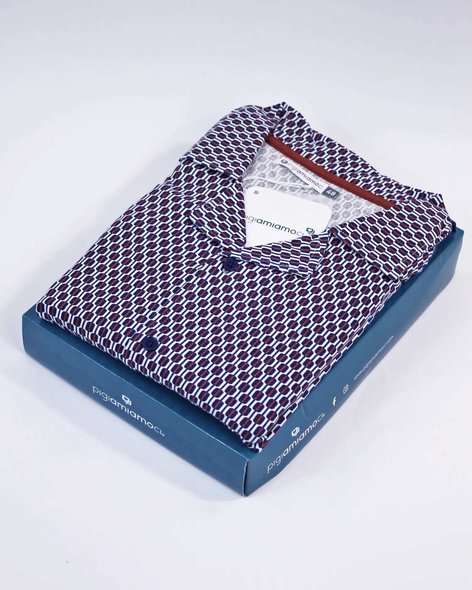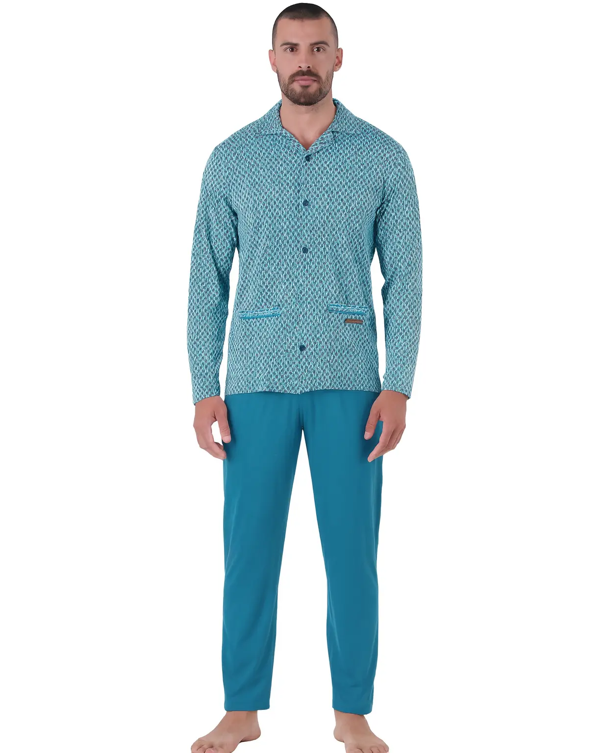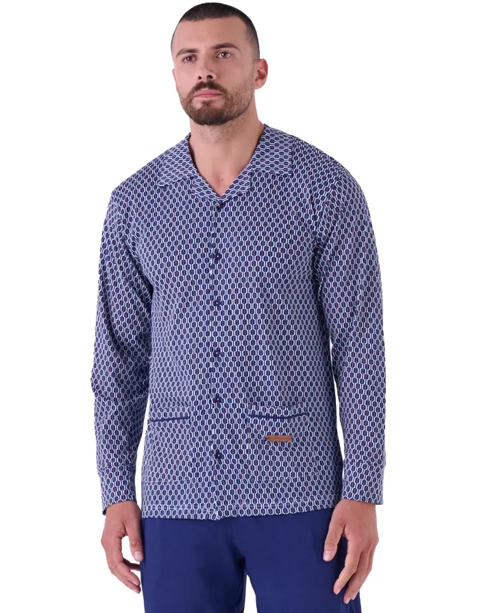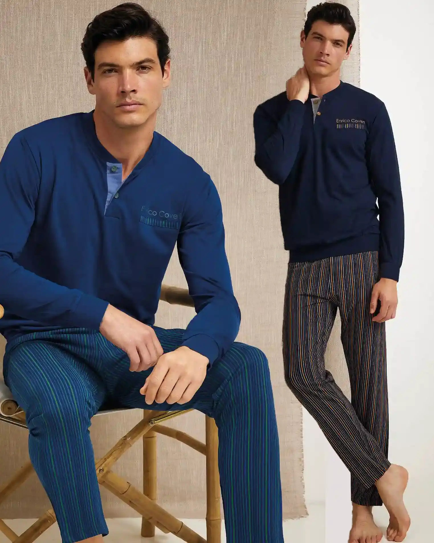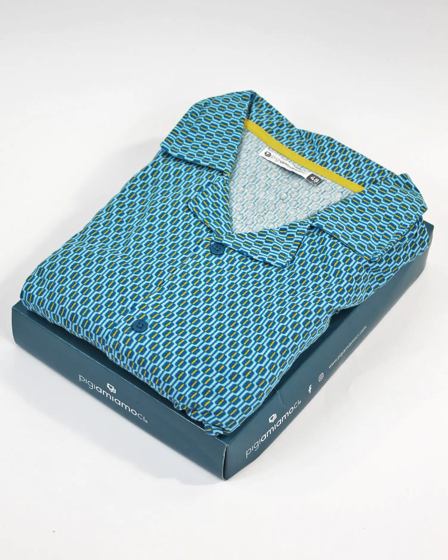Grande attenzione ai dettagli per questo pigiama a marchio Pigiamiamoci che utilizza tessuti naturali in 100% cotone.