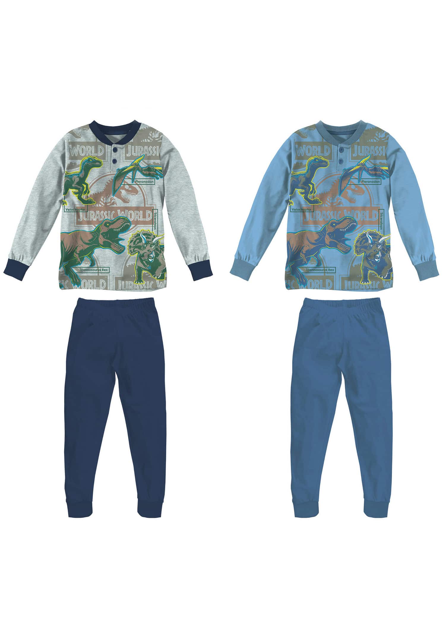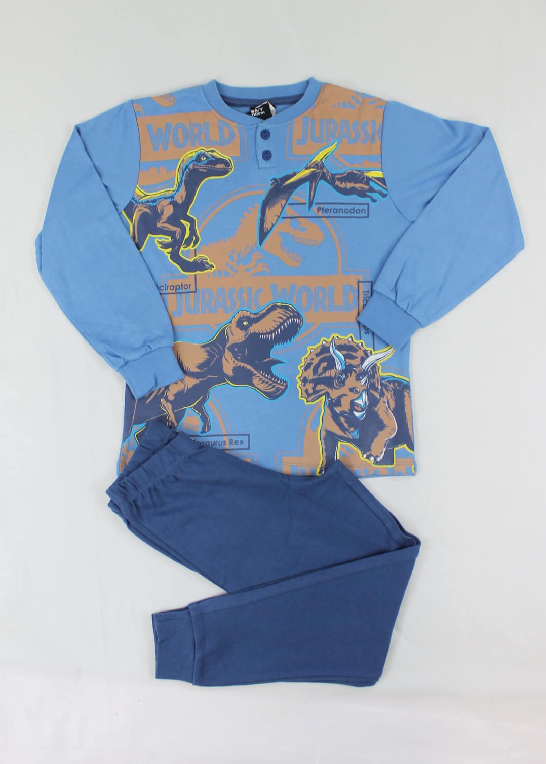 Un pigiama Sabor in 100% caldo cotone con stampa serigrafata raffigurante i dinosauri del famoso film Jurassic World. Un fantasioso mondo accompagnerà le notti e i momenti in casa del tuo bambino, offrendogli comodità e calore grazie al tessuto interlock e alla morbida aderenza su caviglie e polsi.
