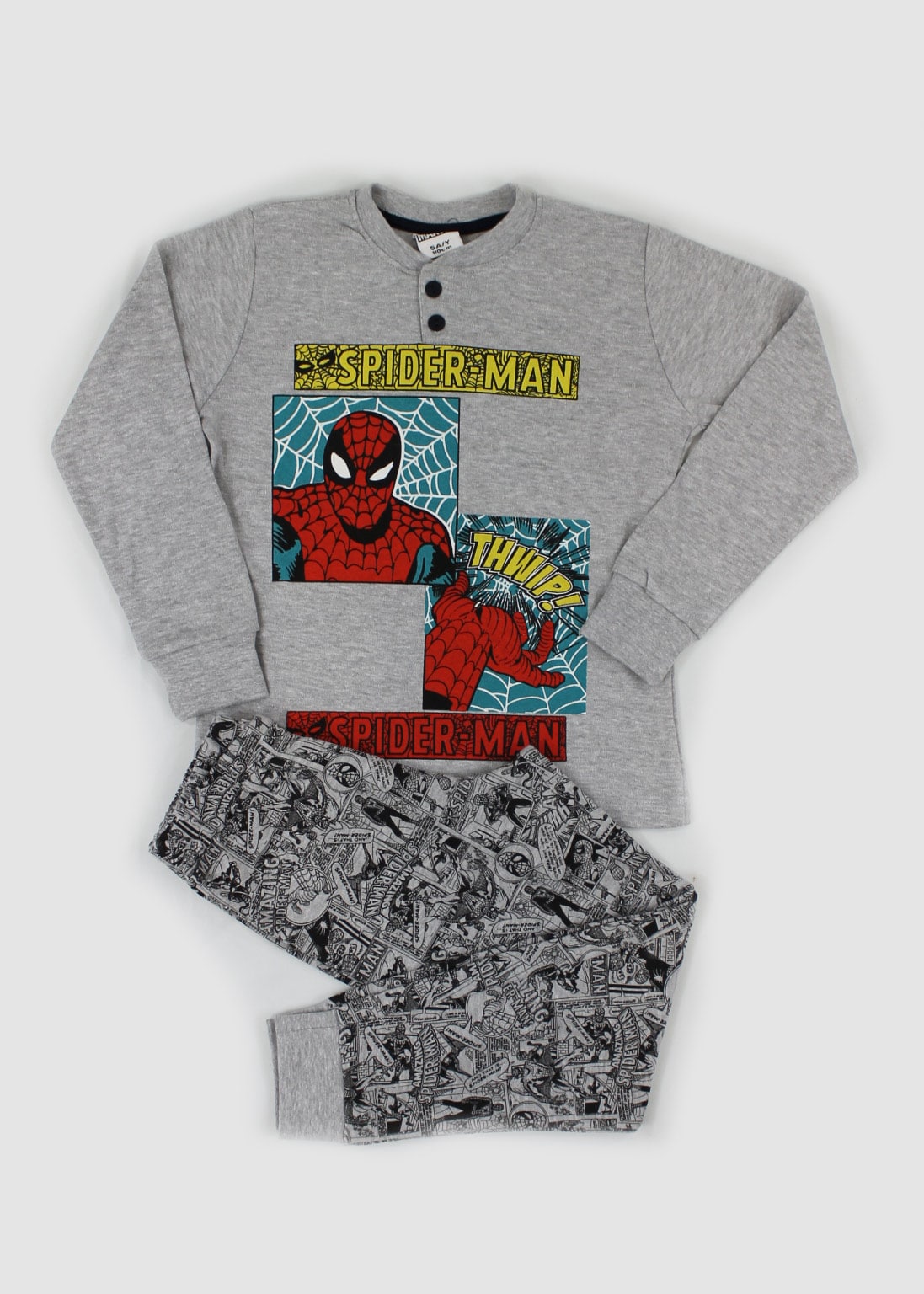 Un pigiama Sabor in caldo cotone con stampa serigrafata raffigurante Spiderman. Il famoso eroe Marvel accompagnerà le notti e i momenti in casa del tuo bambino, offrendogli comodità e calore grazie al tessuto interlock e alla morbida aderenza su caviglie e polsi.