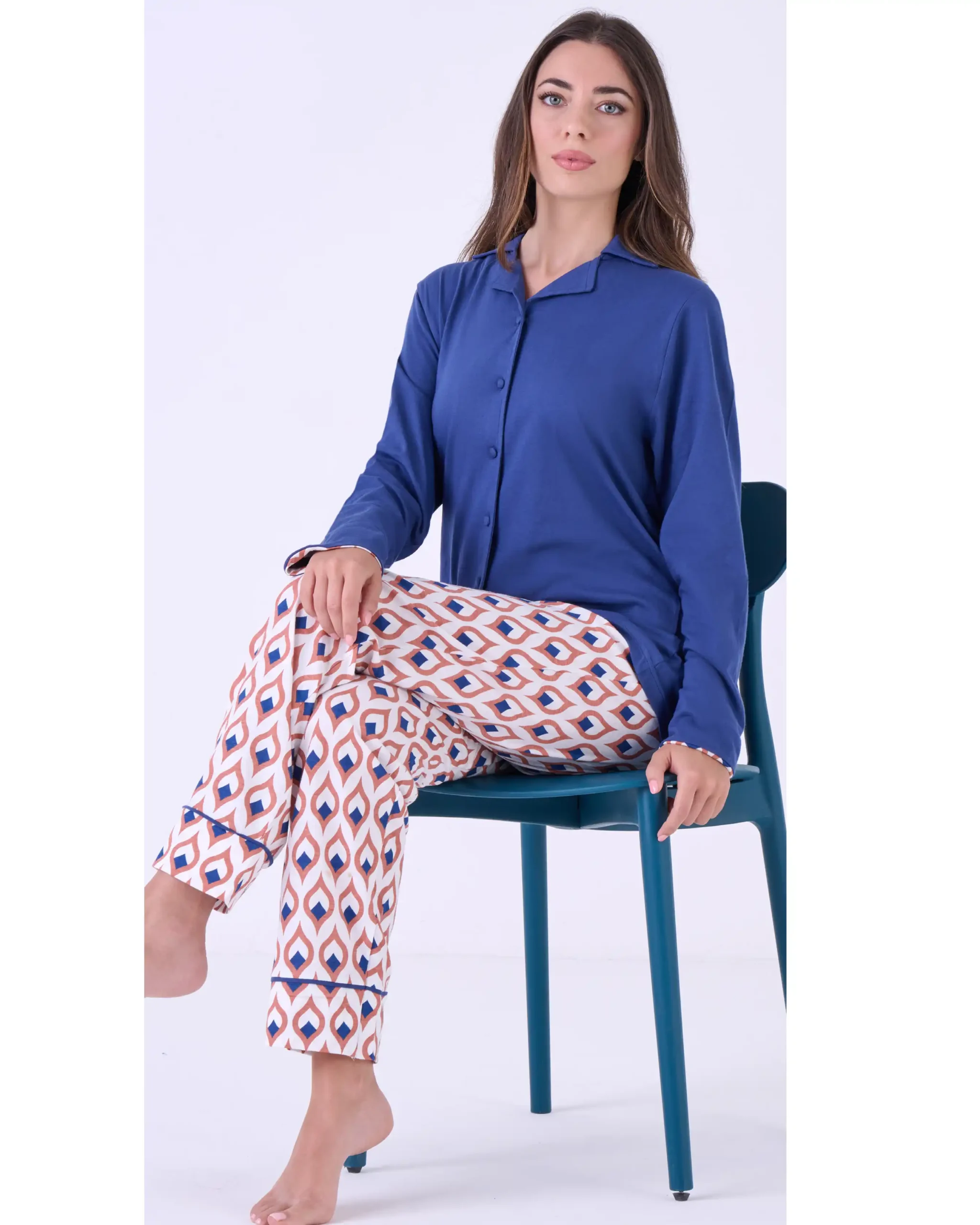 • Pigiama Lungo Cotone Donna Aperto | Pigiamiamoci 3644