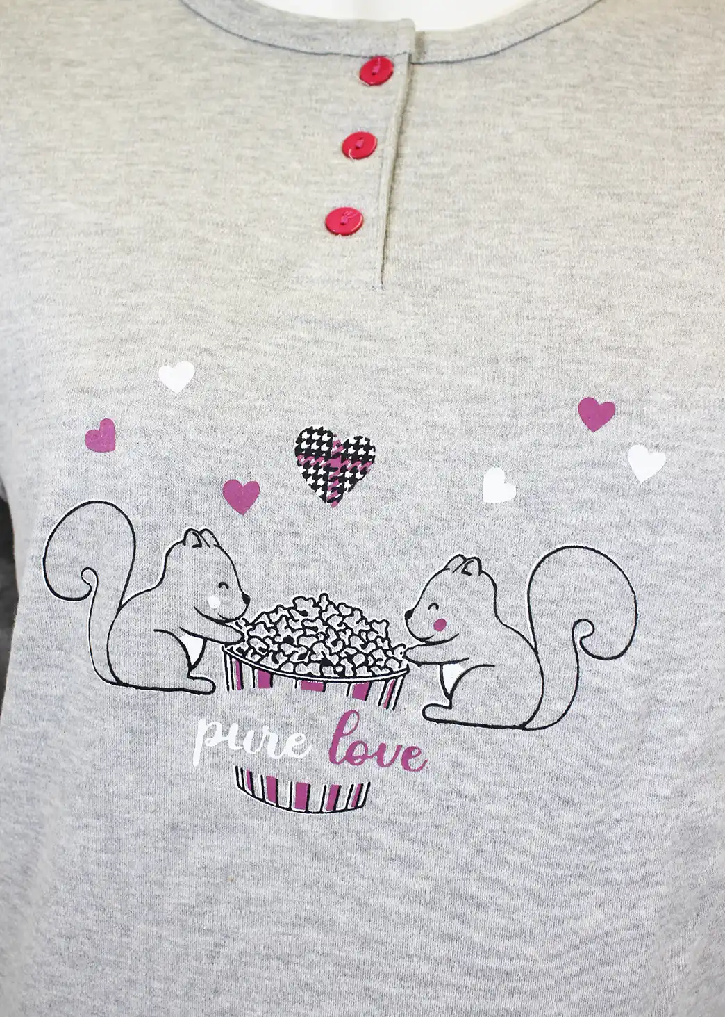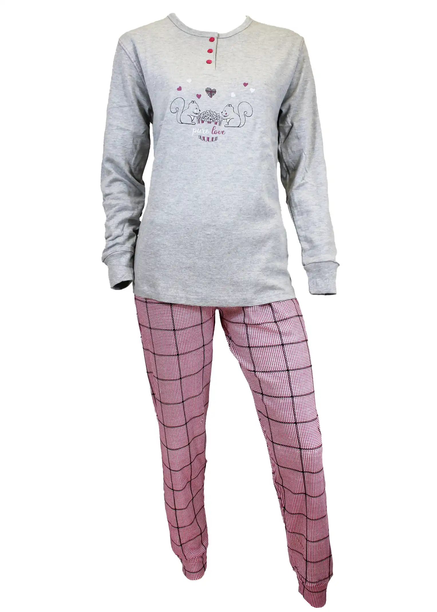 Realizzato in 100% caldo cotone interlock a trama incrociata, adatto alle stagioni più fredde come autunno e inverno. Presenta maglia con polsini e girocollo con bottoncini, pantalone con fascia elastica sulle caviglie.
