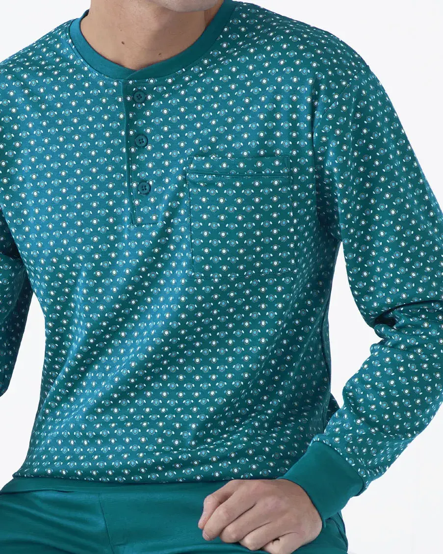 Disponibile nei colori blu e petrolio, questo pigiama è ideale per chi cerca un modello calibrato uomo pratico e di qualità, adatto sia al riposo che al relax in casa.