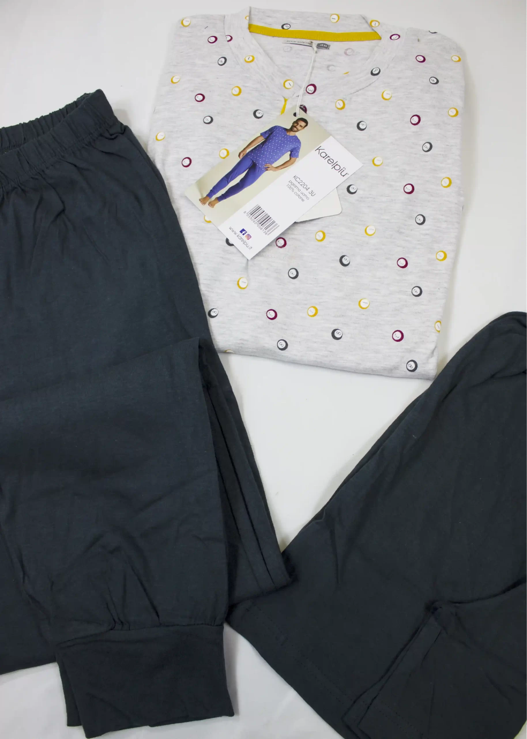Pigiama uomo di Karel realizzato in jersey di cotone 100% e formato da mezza manica + pant. lungo + pant. corto