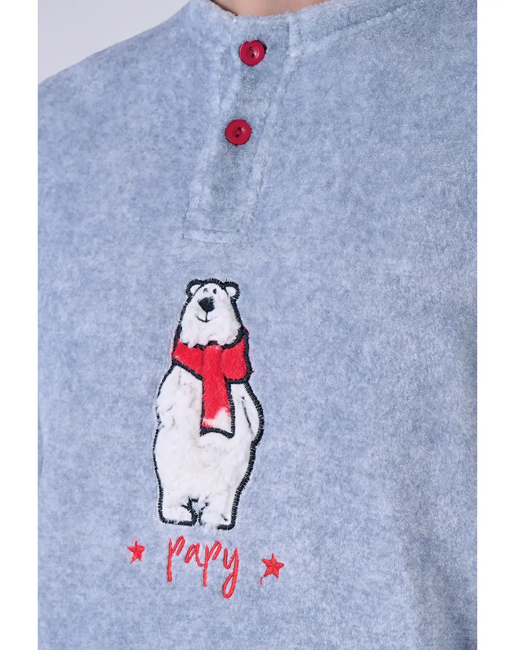 Rifinito minuziosamente presenta una simpatica applicazione di orsetto sulla maglia con scritta papy , collo a giro con bottoncini e pantaloni con stampe di orsetti. Ottima Qualità ad un prezzo super!