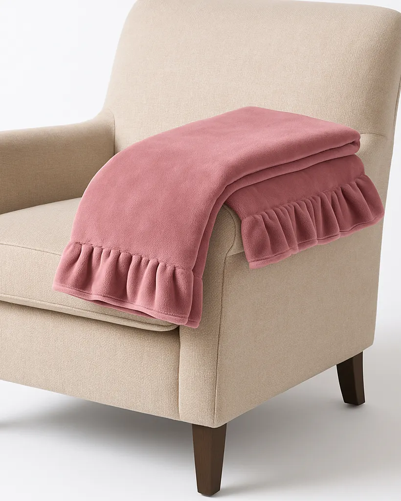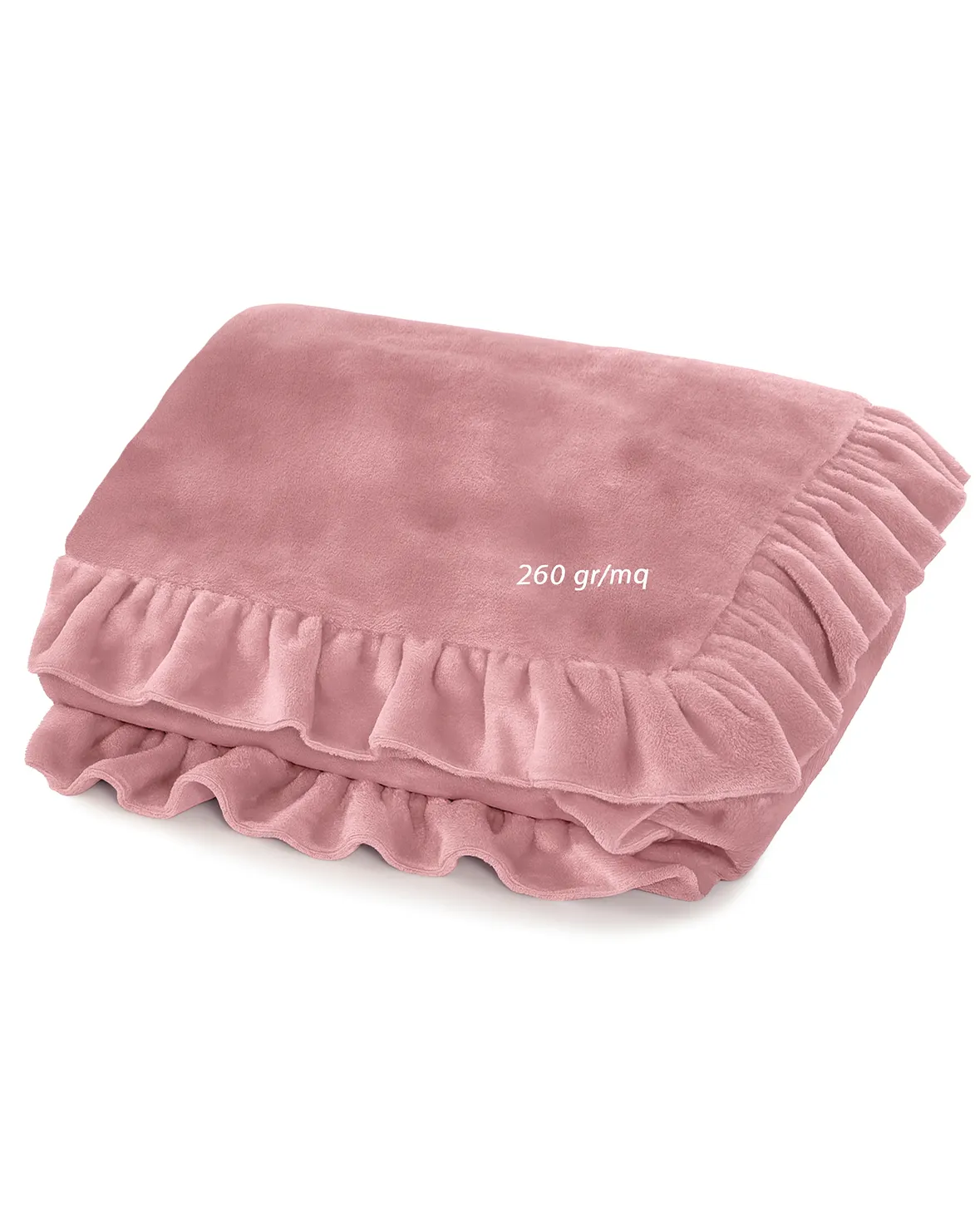 Avvolgiti nel calore e nella morbidezza del Plaid Lovely Shabby con balza, un accessorio raffinato che unisce stile romantico e comfort assoluto.