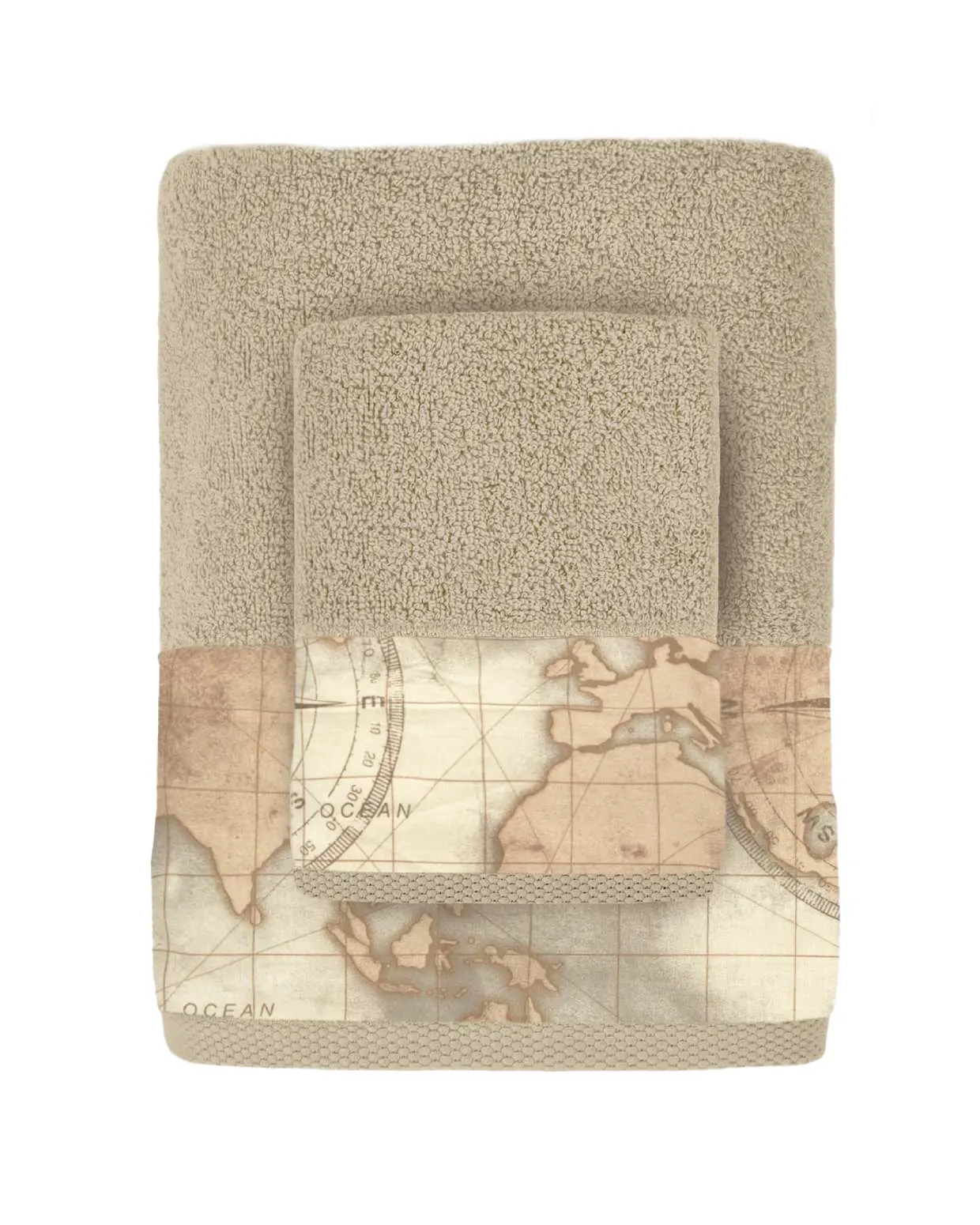 La caratteristica distintiva è la balza stampata con motivo mappa antica, che dona un tocco originale ed elegante, perfetto per bagni classici, shabby chic o moderni con dettagli vintage.