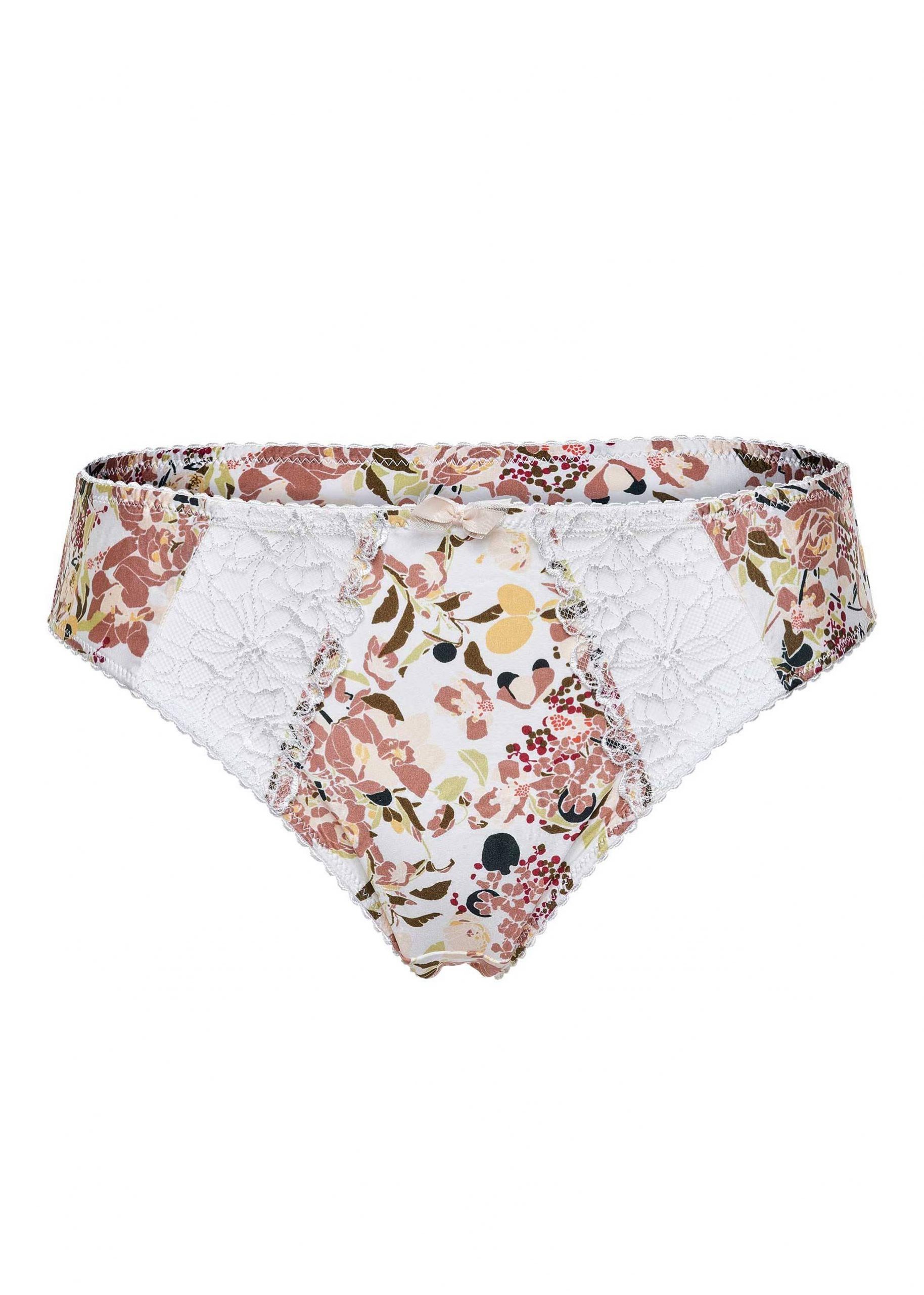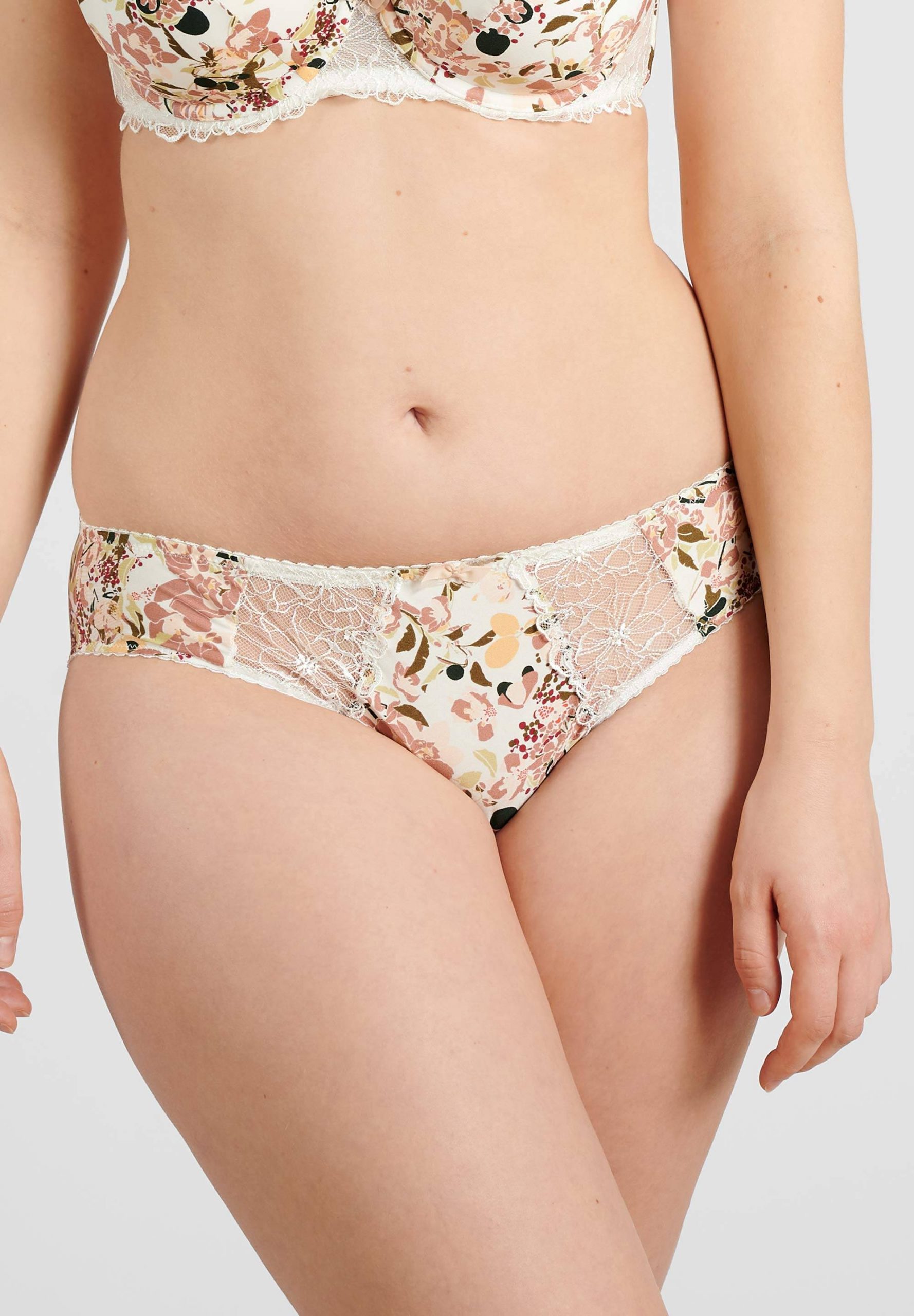 Slip ideato per donne curvy, in morbida microfibra con stampa grafica floreale e raffinati ricami floreali in trasparenza.