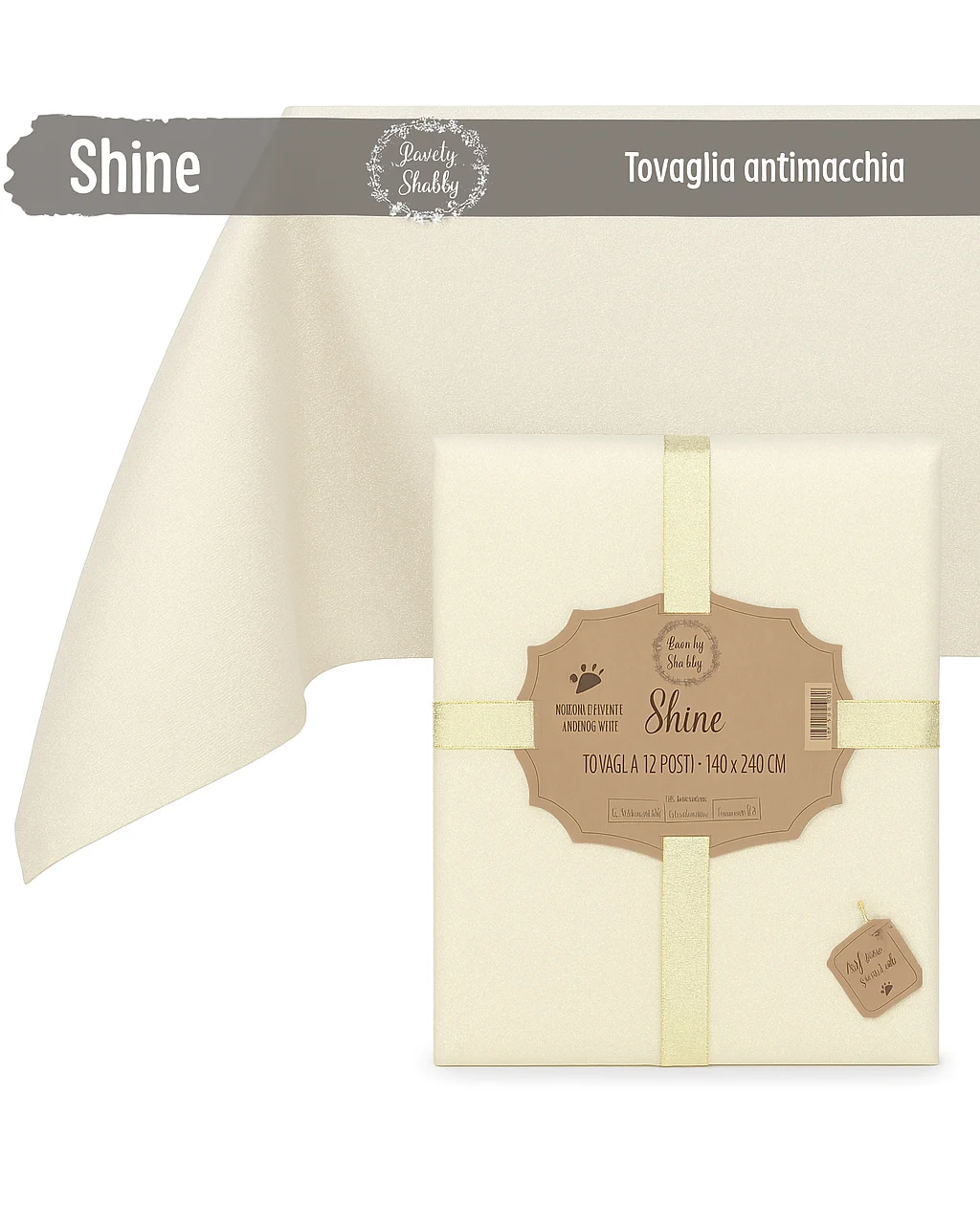 Tovaglia Lovely Shabby Shine – Polvere di Stelle in tessuto antimacchia e idrorepellente con luminosi riflessi dorati.