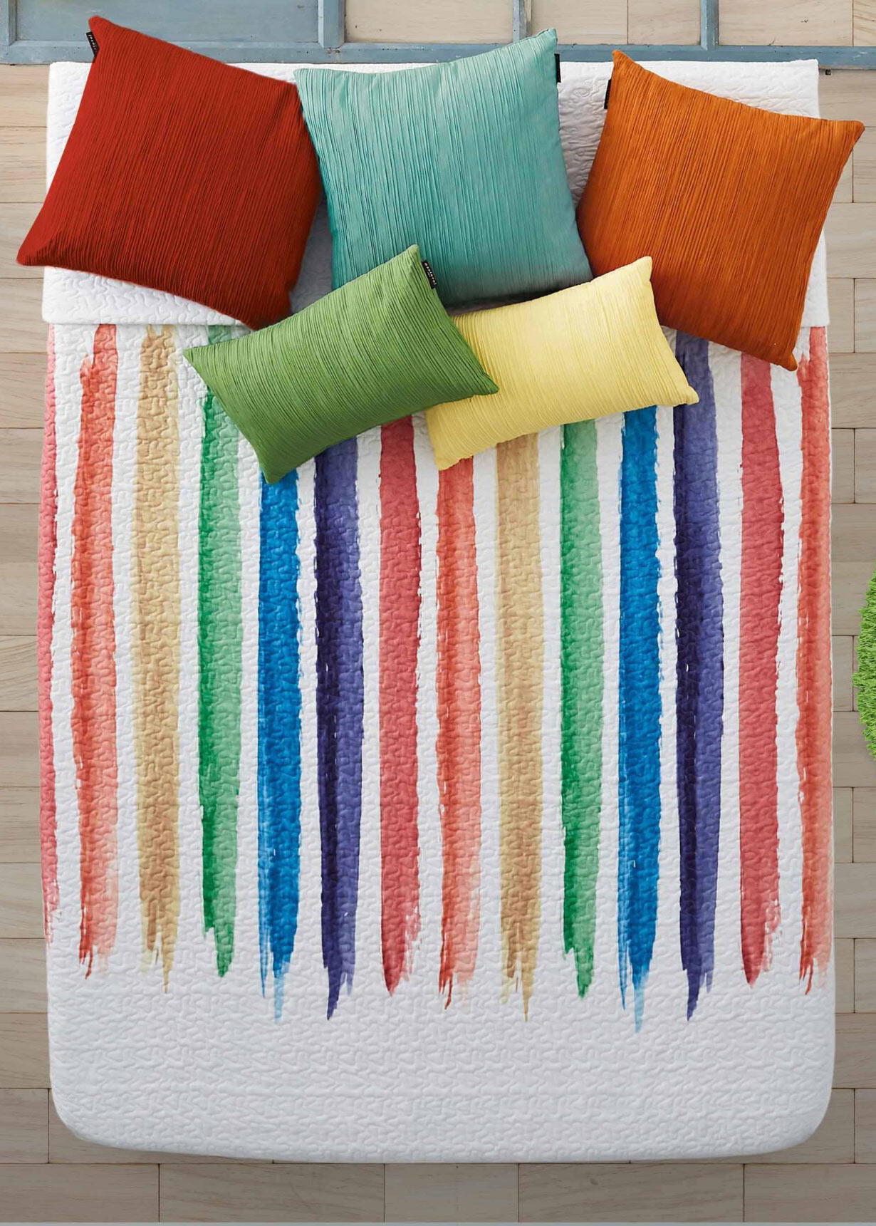 Trapuntino “Bouti Colors” di Monterol, ideale per la mezza stagione. Double face, con colorata fantasia in due diverse varianti di disegno, per cambiare il look della camera da letto con un solo gesto.