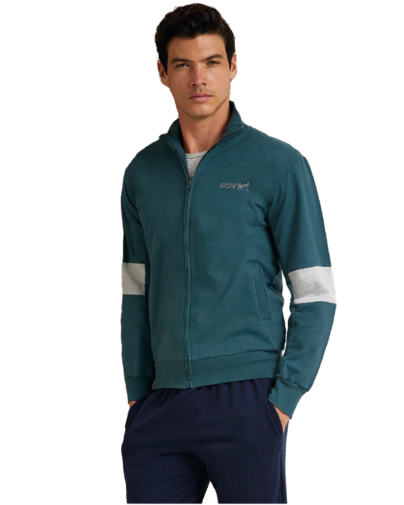 Giacchetto interamente apribile con comoda zip anteriore, polsini sulle maniche e colletto alto; Cucita con tessuti di diverso colore applicati per avere un prodotto di alta qualità. Tuta adatta a chi cerca libertà di movimento e freschezza nella stagione calda. Ideale a chi cerca una tuta comoda in cotone fresco e anallergico.