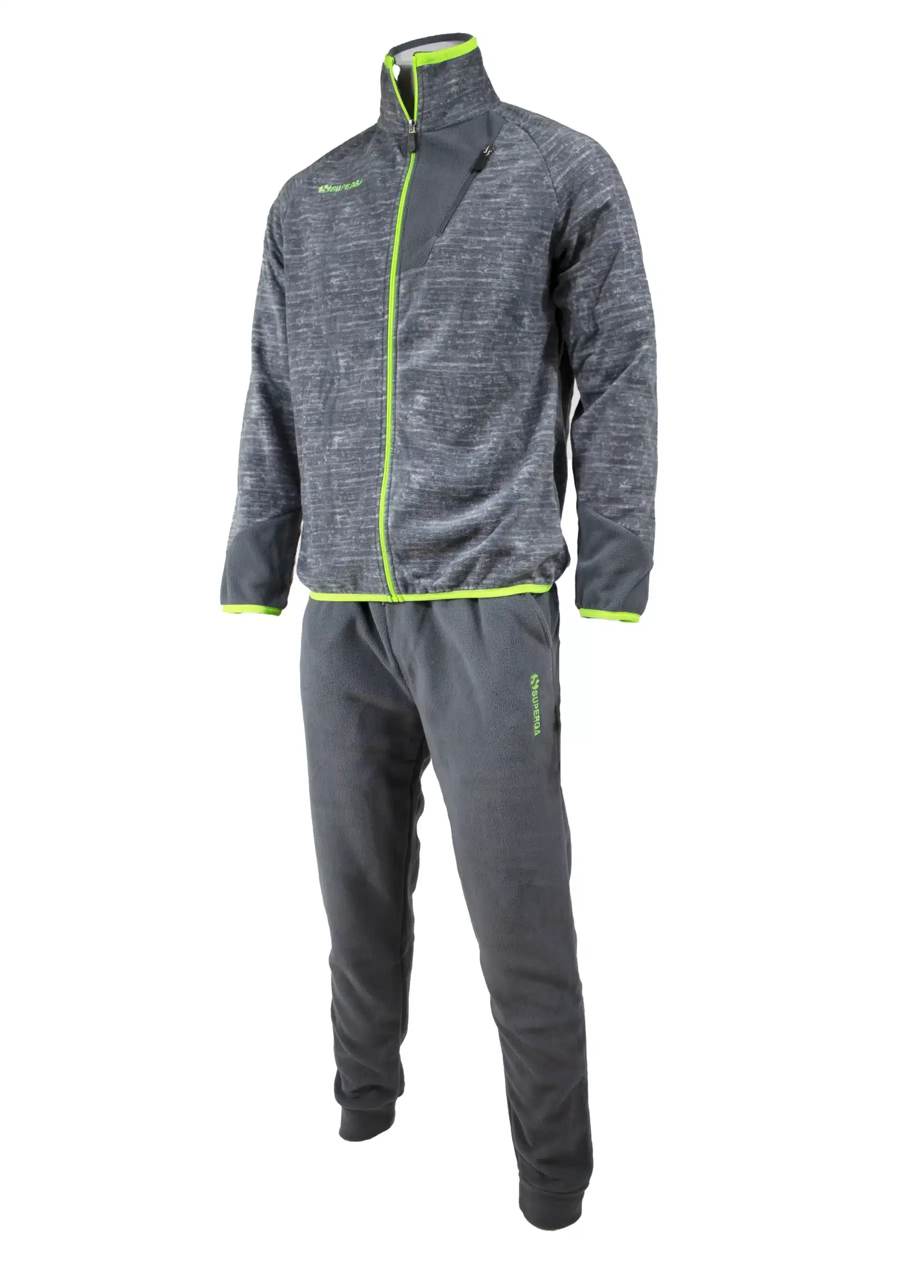 Giacchetto con zip a chiusura intera davanti e colletto a coprire bene. Tasca sul petto in posizione oblicua. Pantalone con restringimento sulla caviglia per una ottima adattabilità.