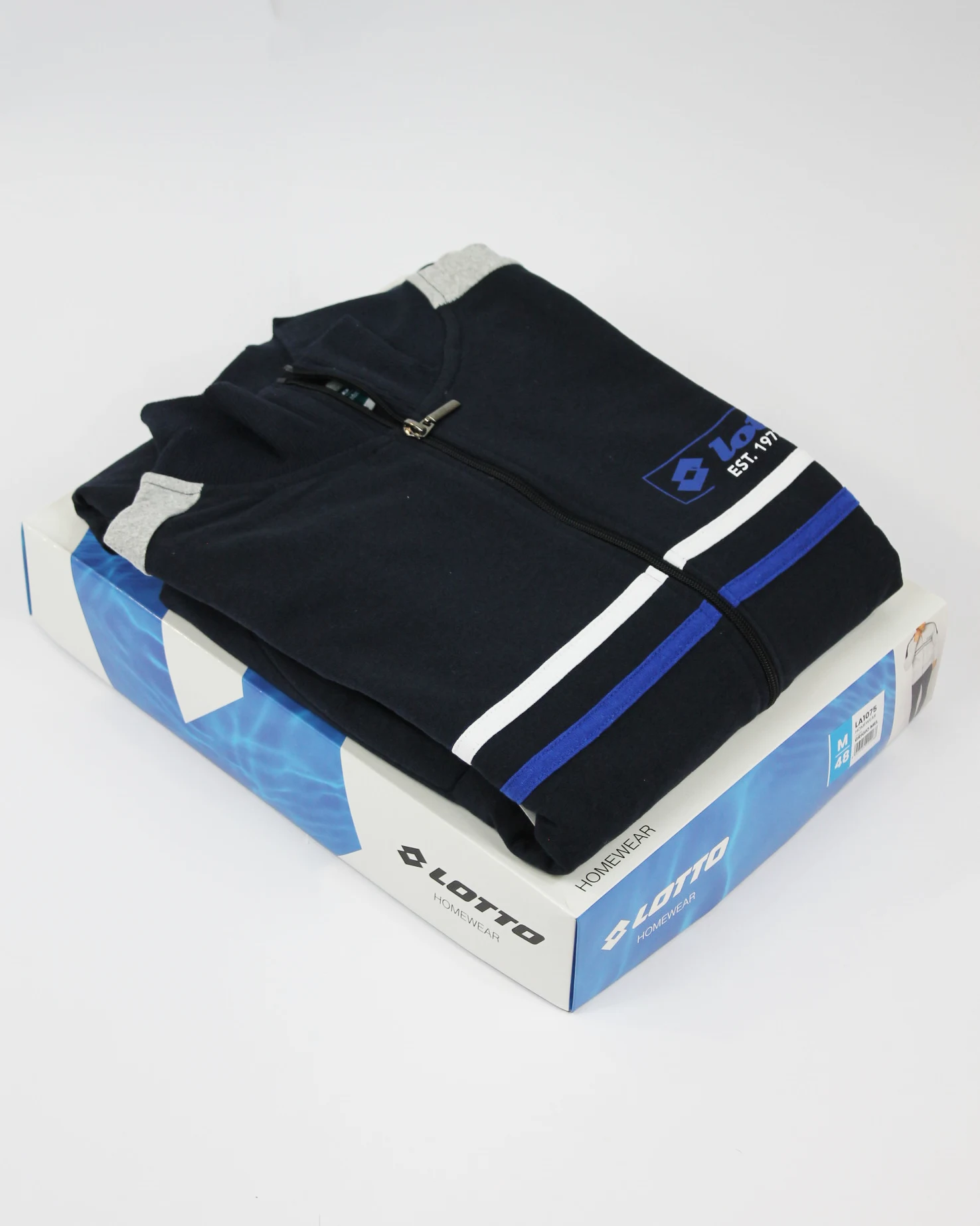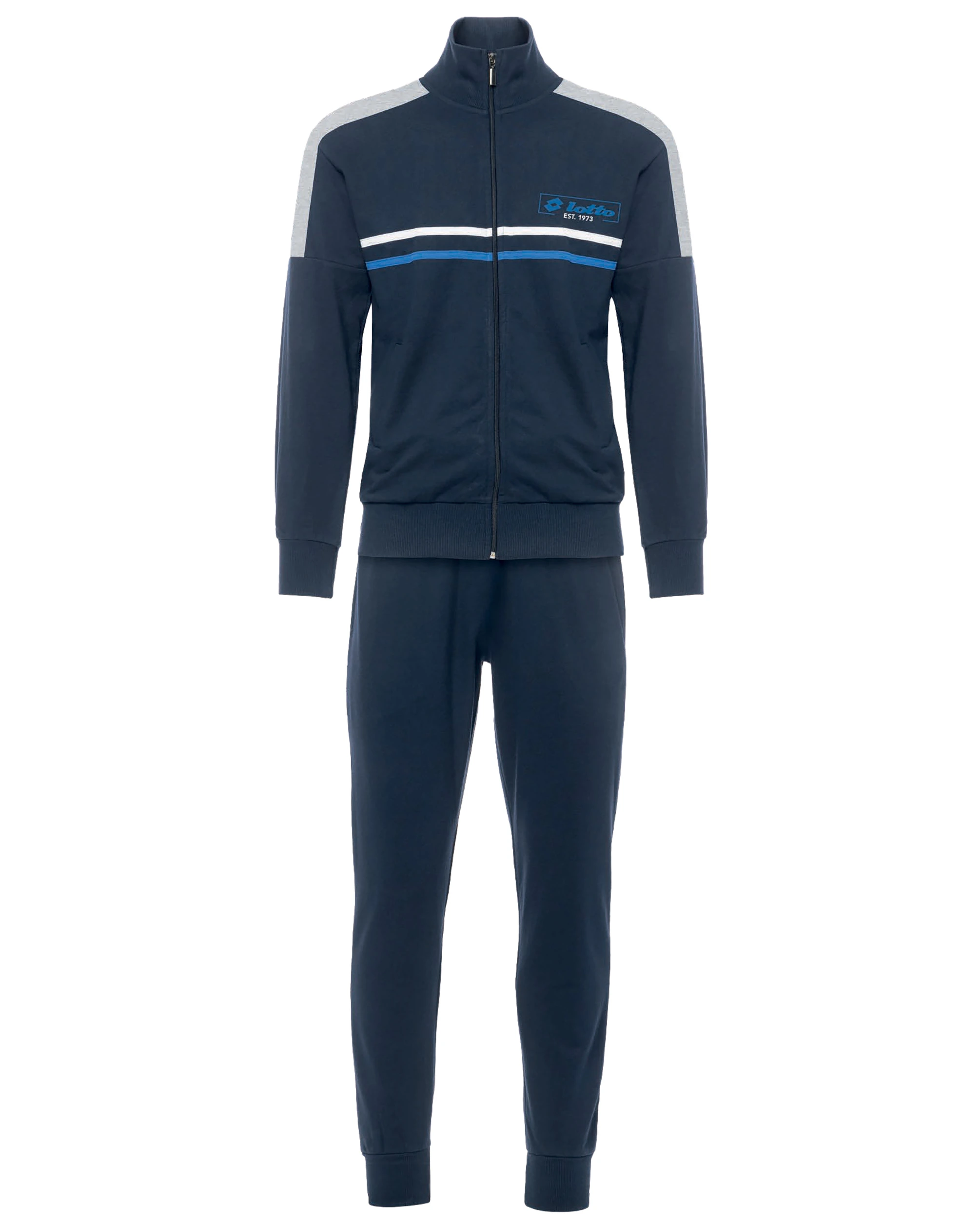 Giacchetto interamente apribile con comoda zip anteriore, polsini sulle maniche e colletto alto; cucita con tessuti di diverso colore applicati per avere un prodotto di alta qualità. Pantalone i tinta unita con tasche laterali, coulisse in vita e polsini sulle caviglie.