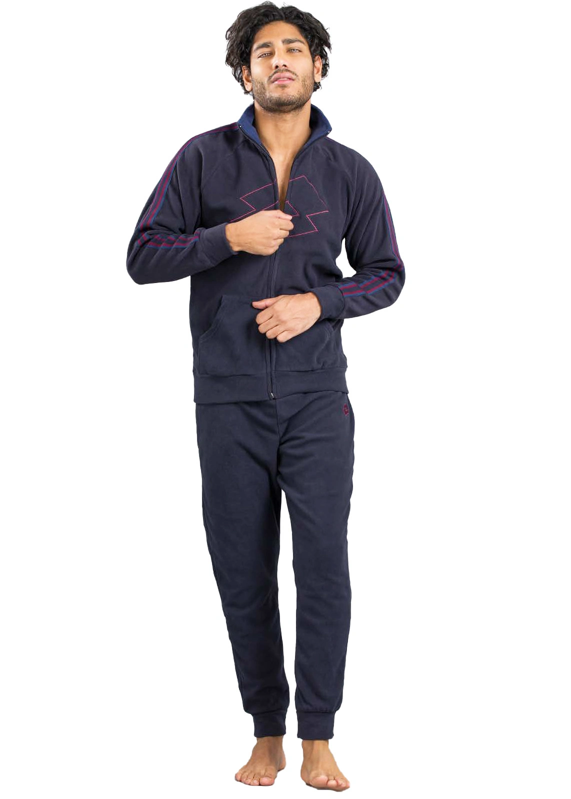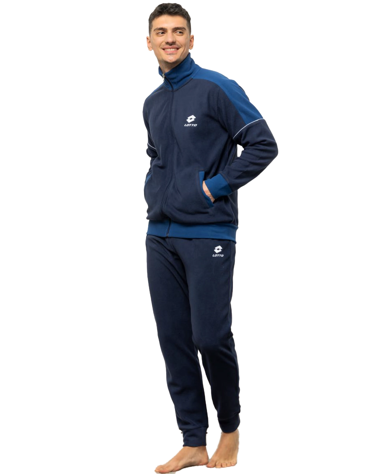 Tuta sportiva da uomo di Lotto realizzata in pile, tessuto morbido, leggero, caldo e traspirante. Pensata per il relax domestico è disponibile nelle taglie S – M – L – XL – XXL