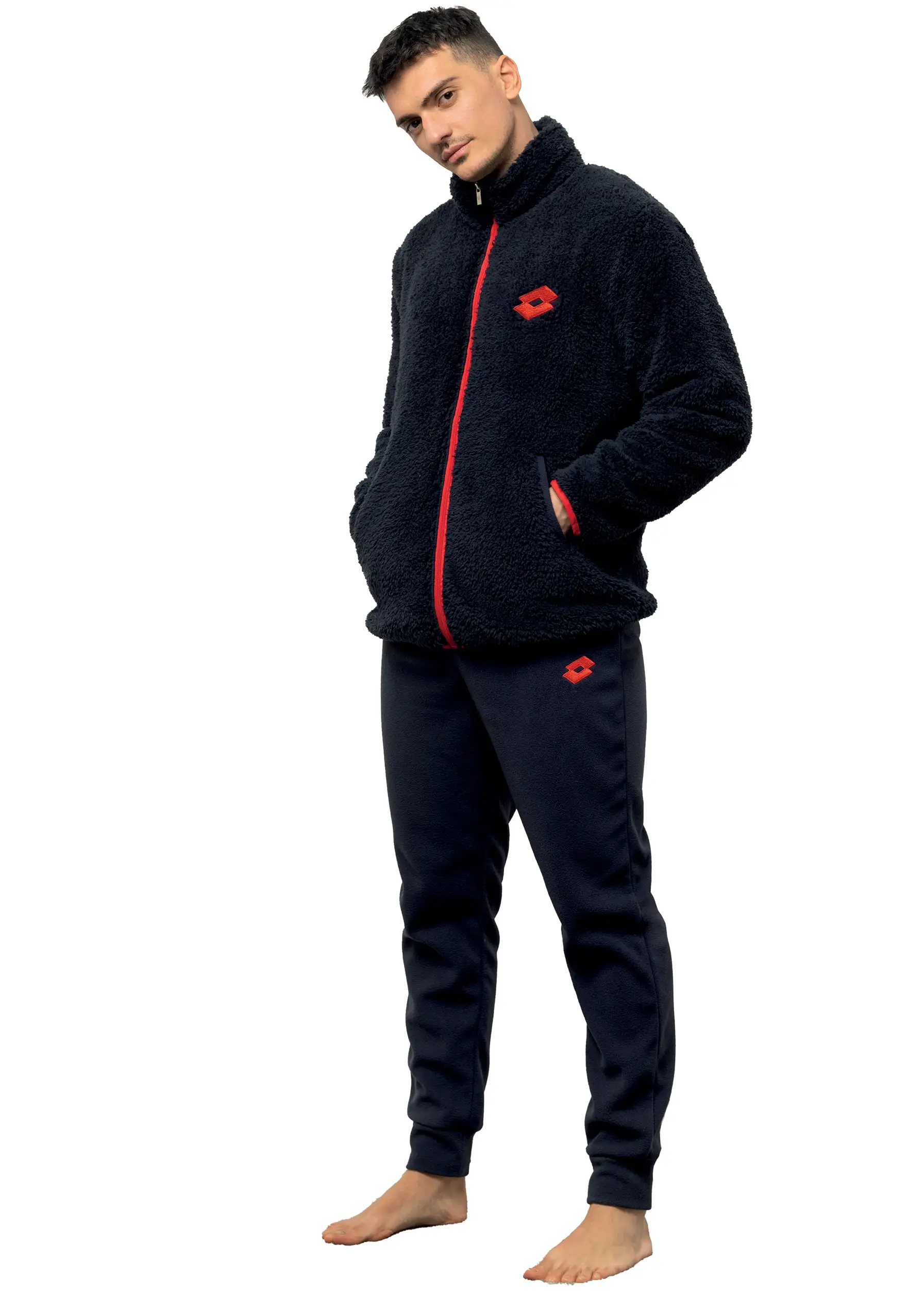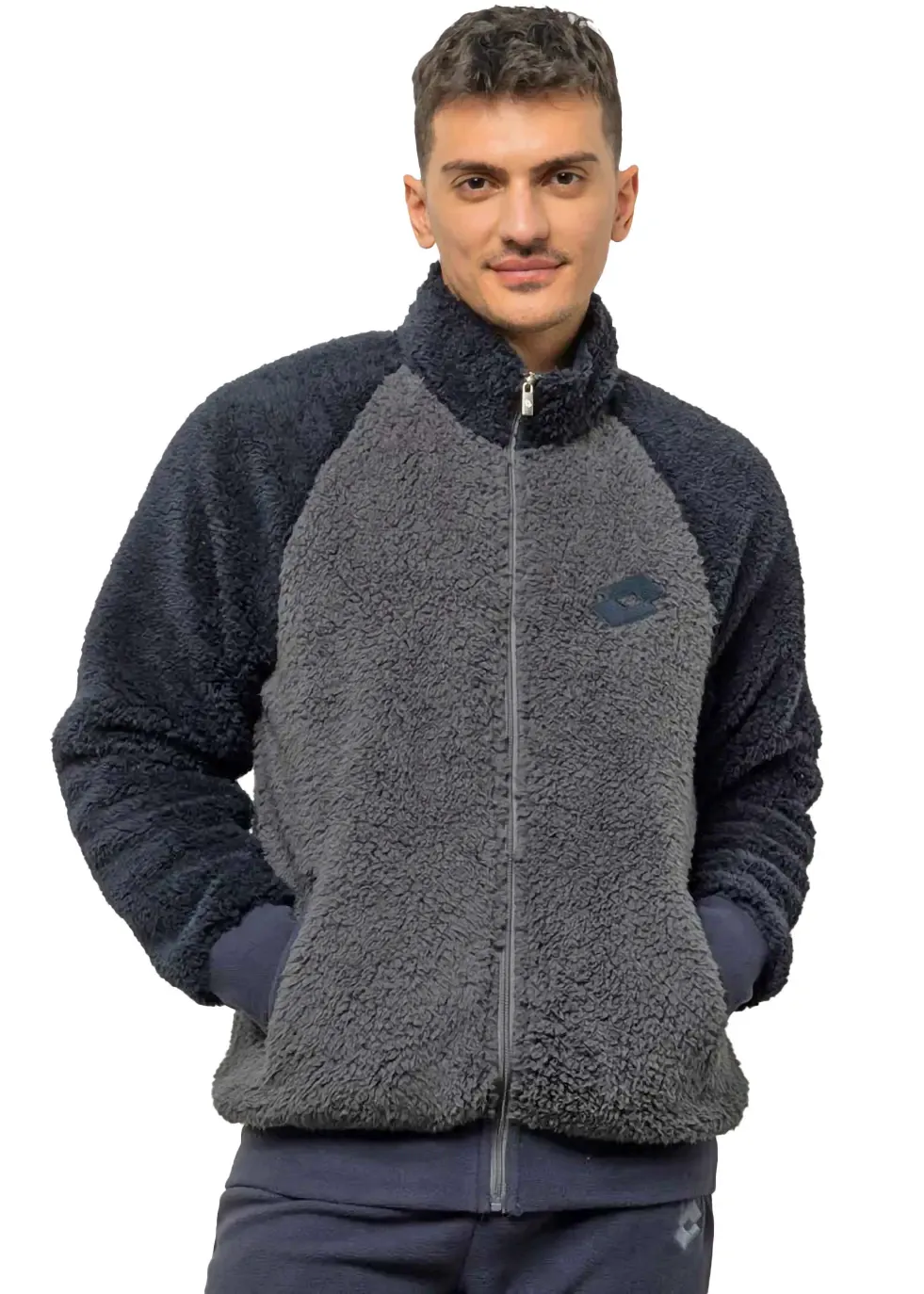 Tuta uomo del marchio Lotto con giacchetto realizzato in pile sherpa agnellato. Una soffice pelliccia che ti farà sentire al caldo e coccolato senza rinunciare allo stile sportivo con colori a contrasto che propone Lotto su questo articolo.
