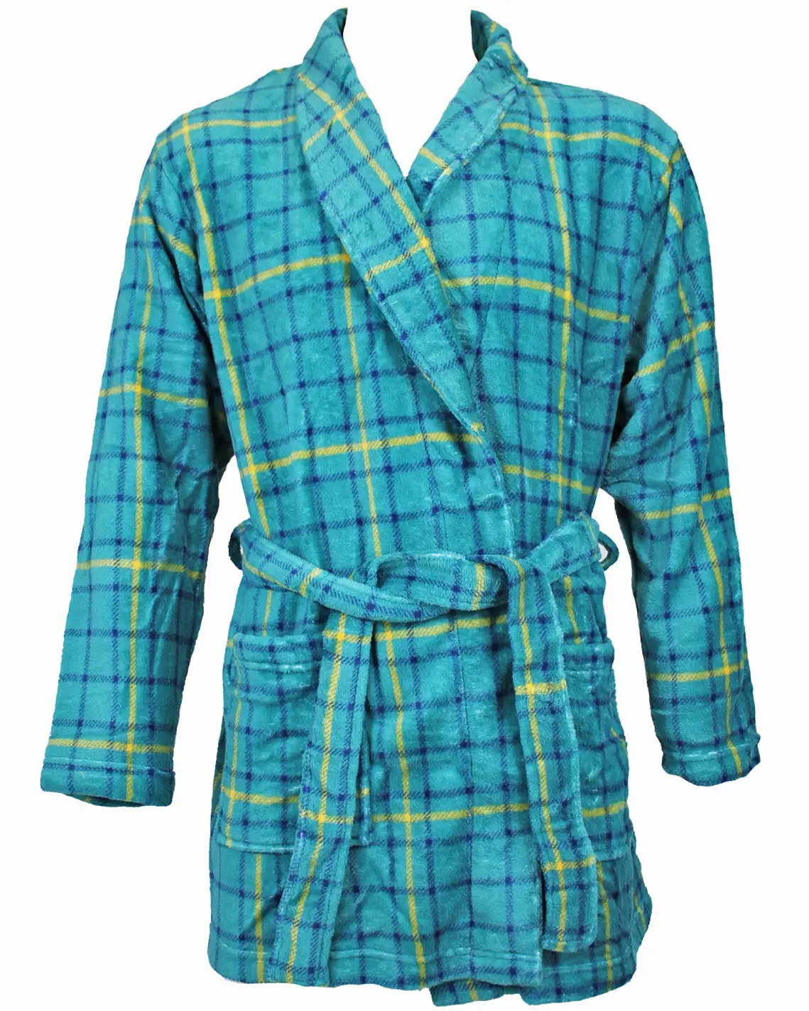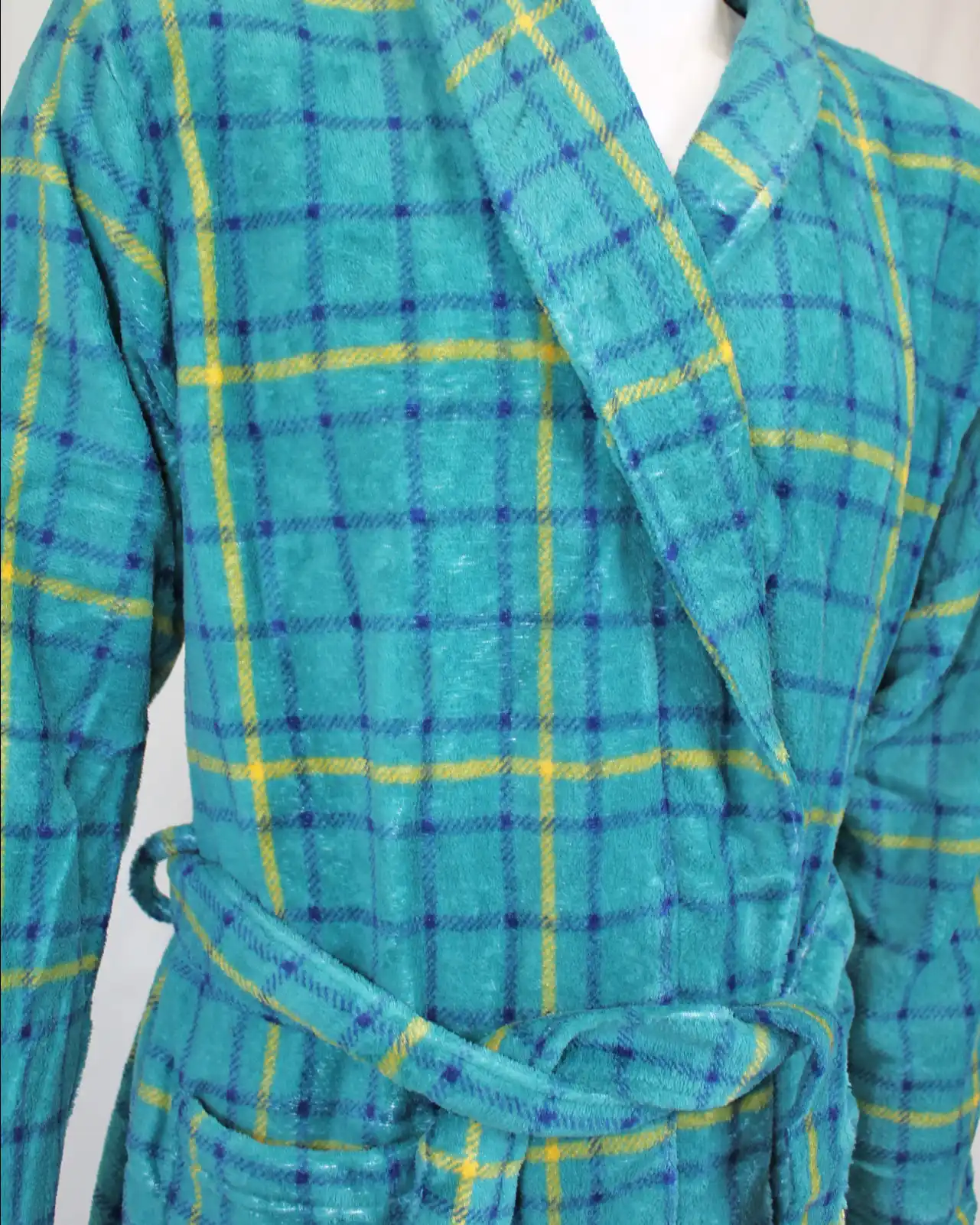 Calda e comoda vestaglia da camera uomo , modello incrociato con collo a scialle. tasche laterali e cintura in vita da allacciare.